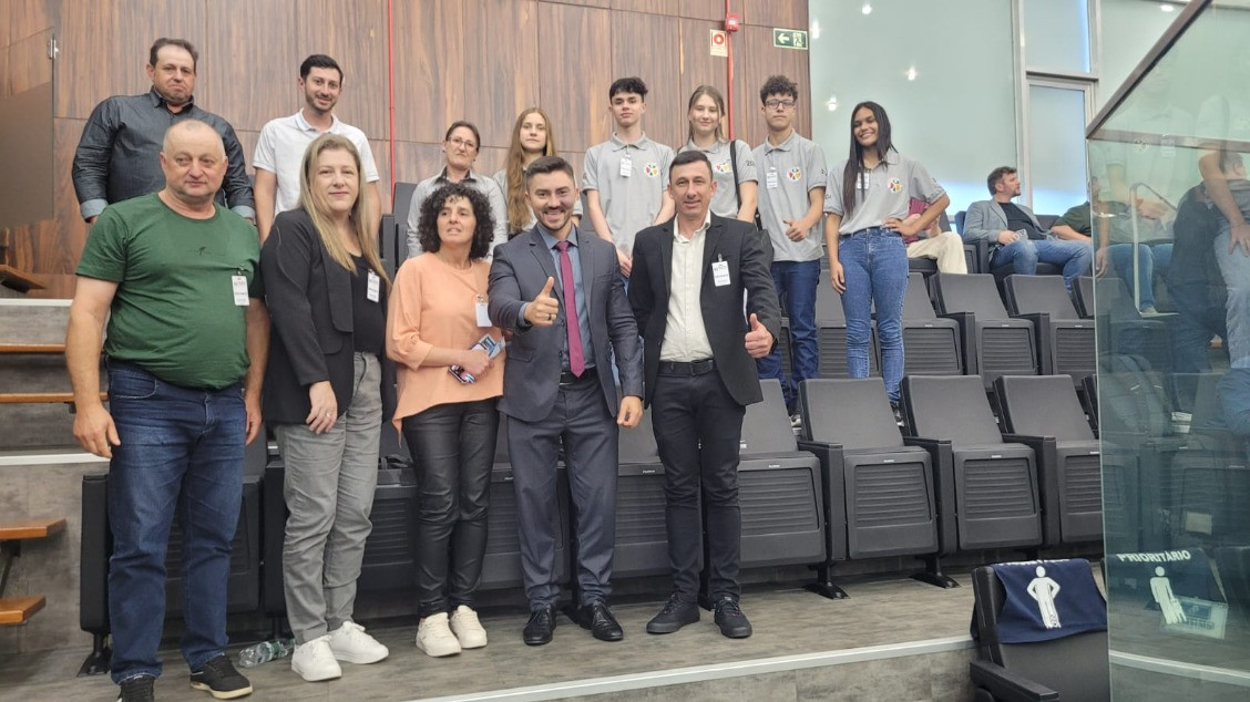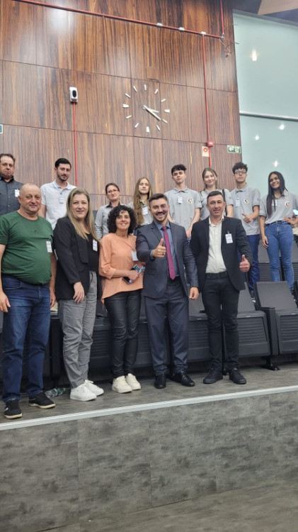 Acompanharam a viagem o Presidente da Câmara, Vereador Junior Paulo Vicenzi (PT), a Vereadora Elaine Garbin Zanchet (PT), os Vereadores David Conte (PT), Alex Junior Confortin – PT e Igor Conte – PT, além das professoras da Escola Estadual Luiza Formighieri, Glaucimeia Menon Centofante e Saionara Centofante Conte.